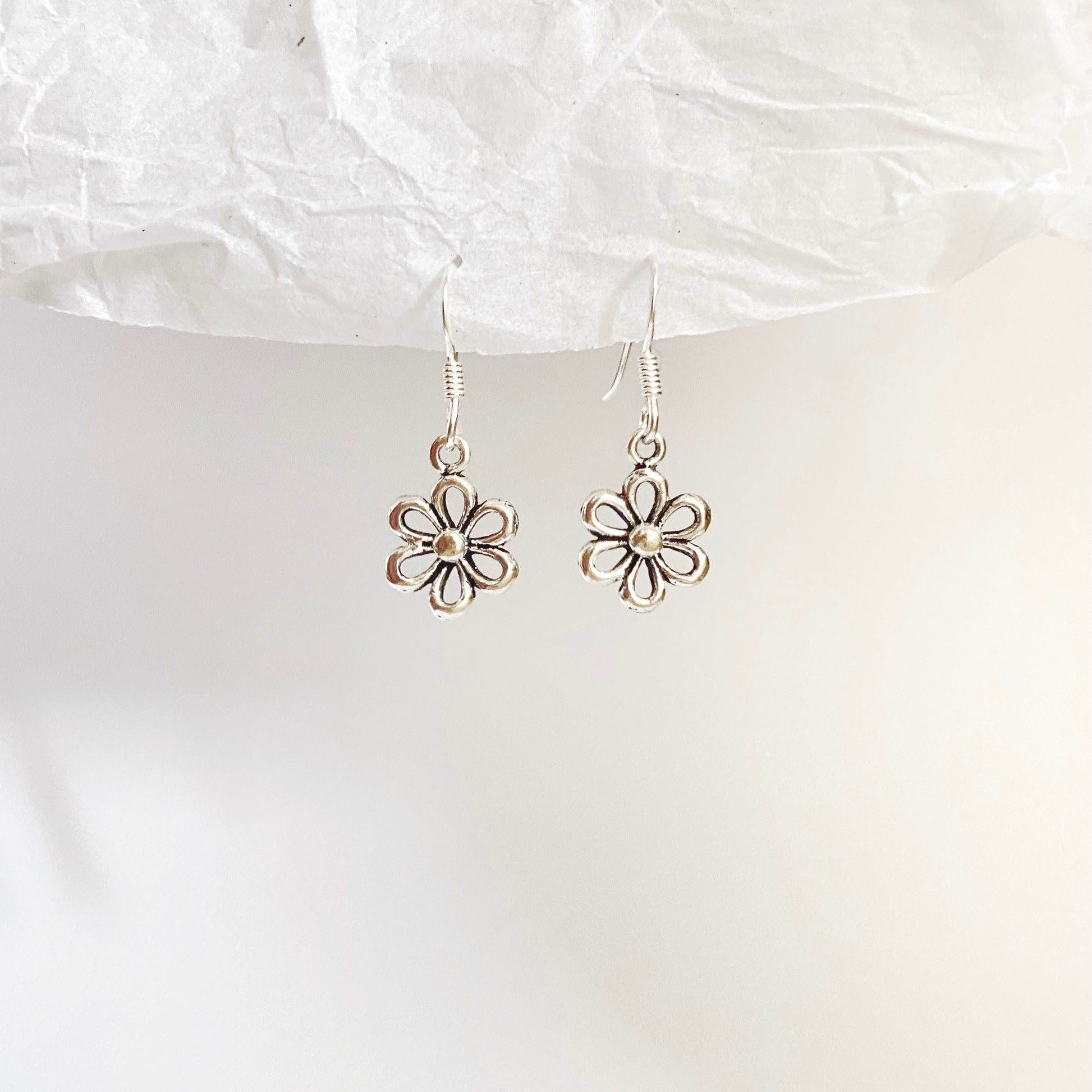 These flower drop earrings have a simple, everyday look which make them an easy addition to your jewellery collection.